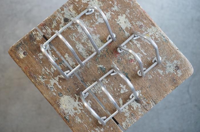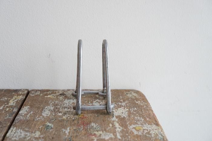太いアルミワイヤーをハンマーで叩いて曲げて