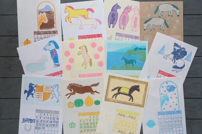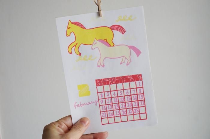 消しゴムはんこのカレンダー。