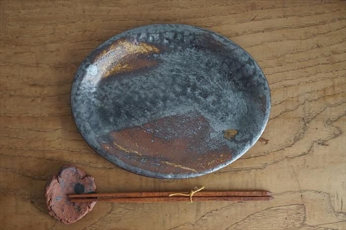 黄土色がアクセントのオーバル皿。